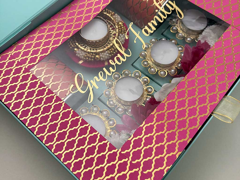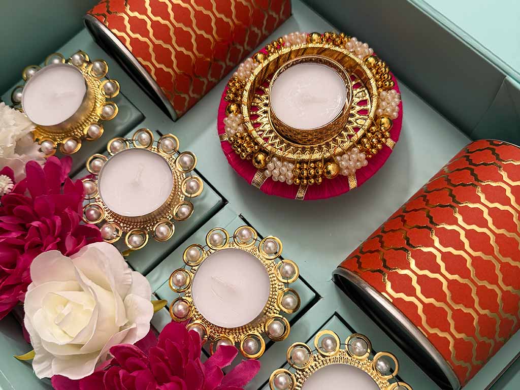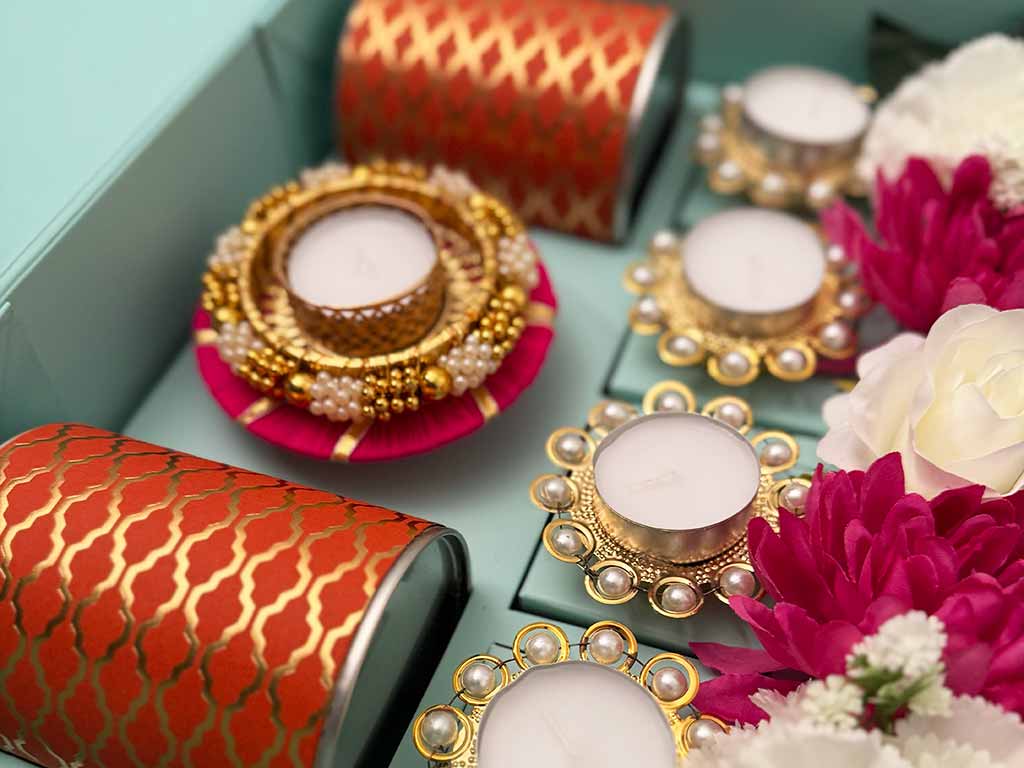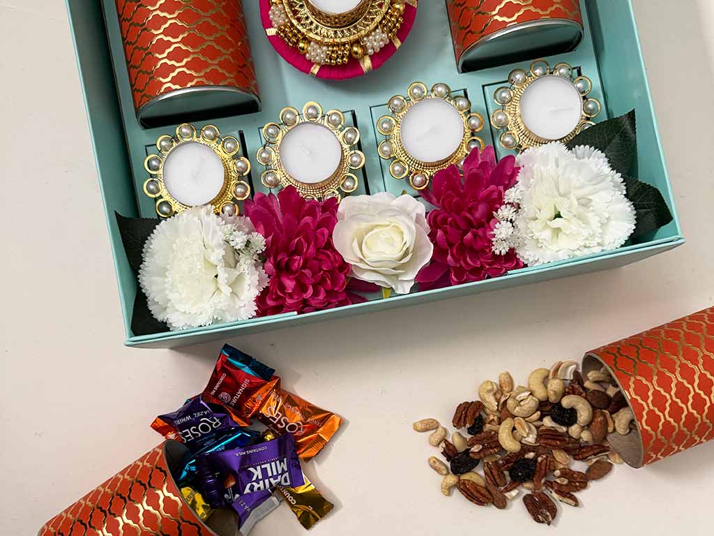 The ultimate Diwali hamper to treat your loved ones. The all-in-one box includes decorative candles, sweet and savoury treats, and more.